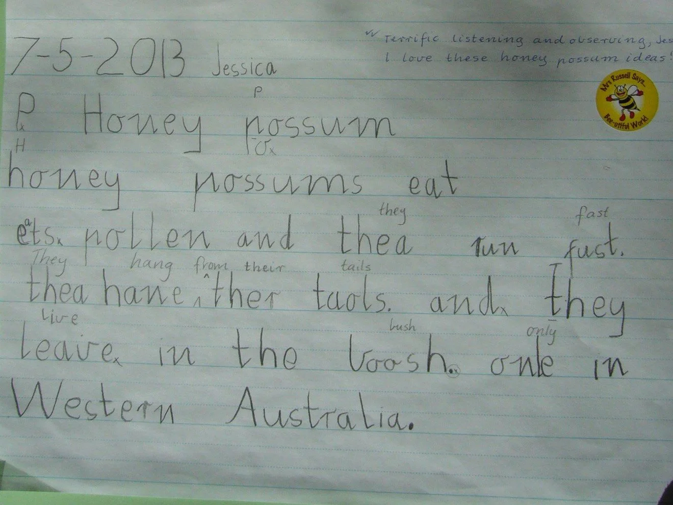 Honey possum page, Year 1, Woodlands PS