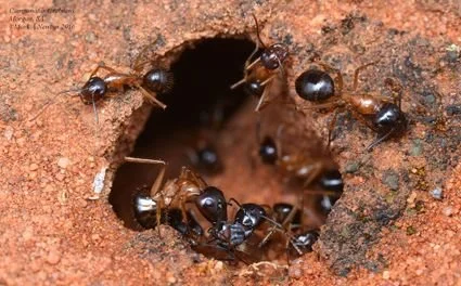 In the eastern Wheatbelt region, near Mukinbudin, these ants have make their nests at the base of particular species of eucalypt tree, a smooth barked gimlet (Eucalyptus salubris).