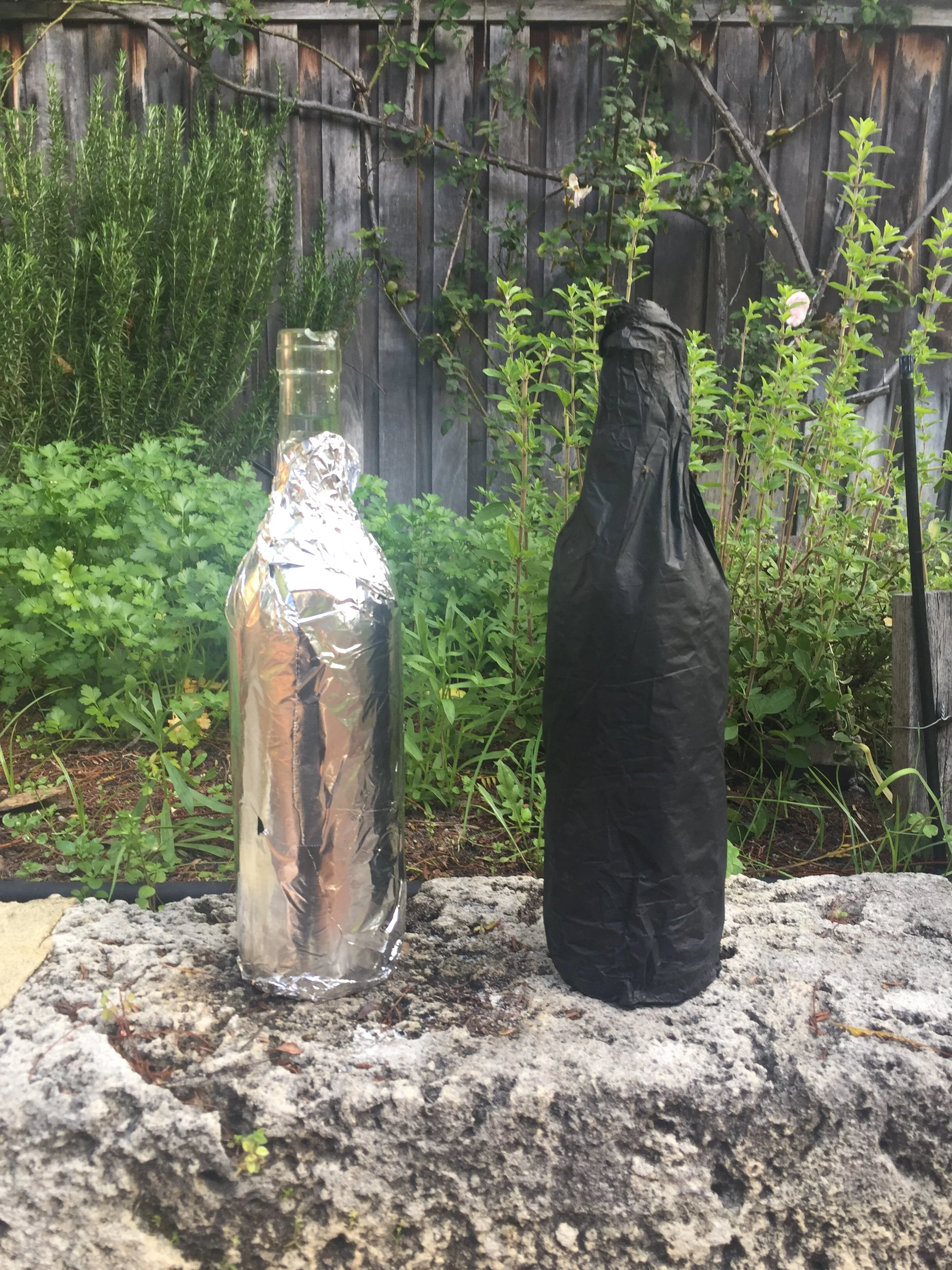4. Wrap one bottle in white paper and the second bottle in black paper.