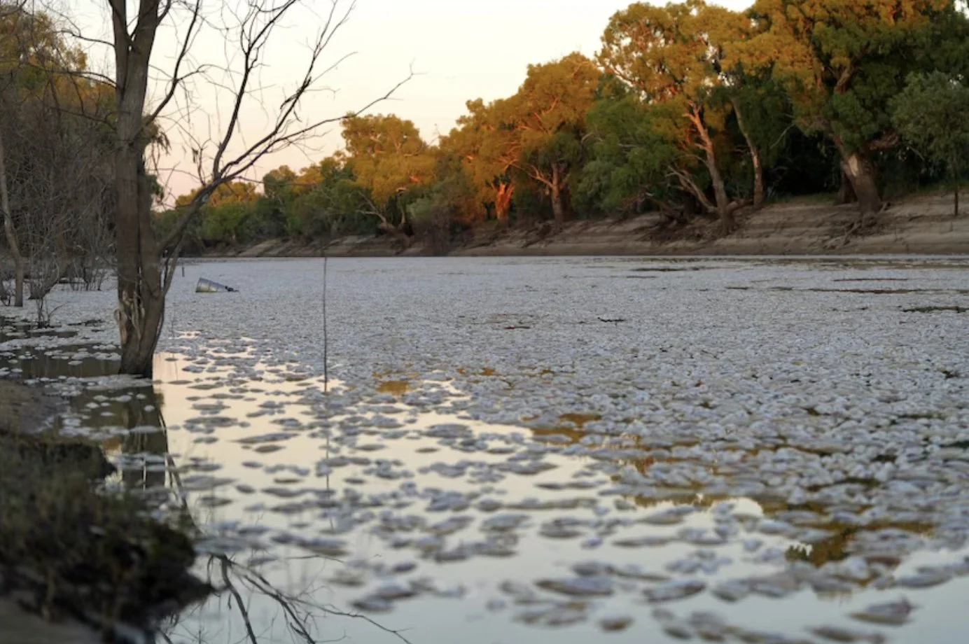 Photo, Fish Kill in the Murray-Darling River System. https://www.abc.net.au/news/2023-03-18/nsw-menindee-mass-fish-kill-worst-in-region/102115184