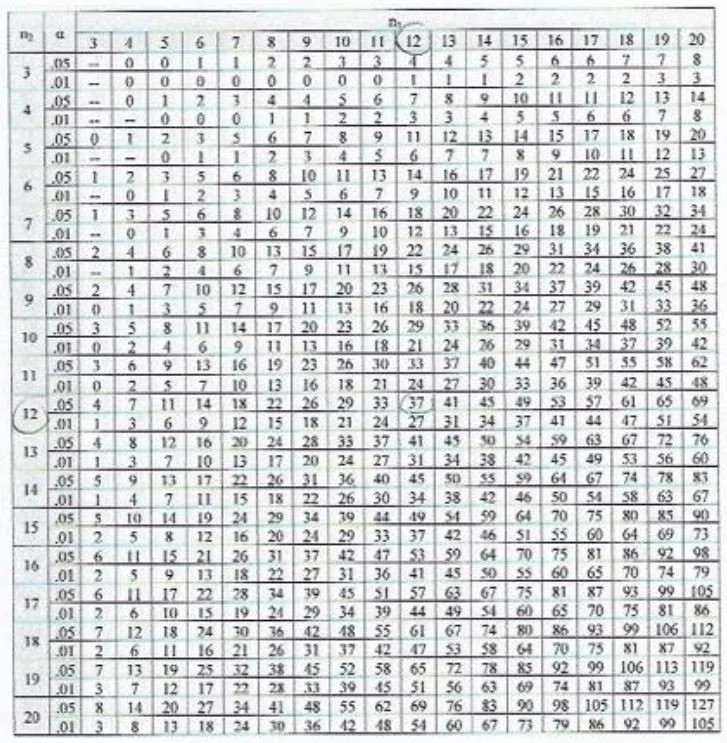 4. Refer to the chart for Critical Values of the Mann-Whitney test.